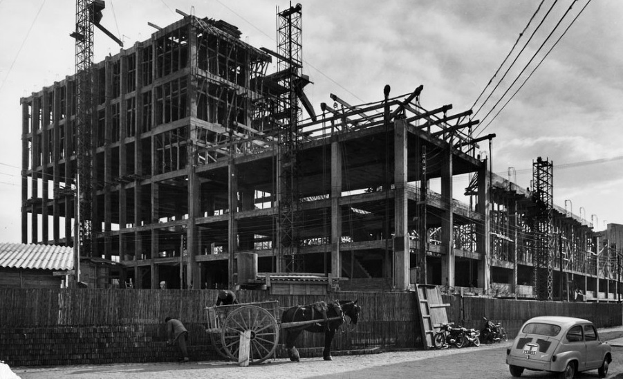 Afbeelding 3: Het nieuwe fabriekscomplex in aanbouw in de Zona Franca, midden jaren vijftig.