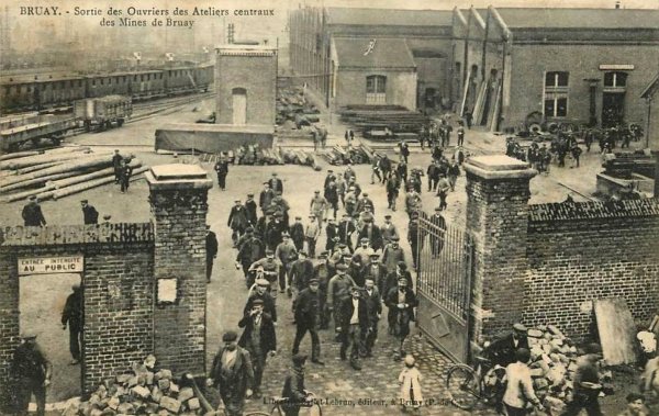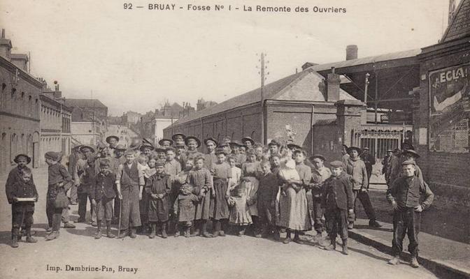 Afbeelding 2: Mijnwerkers verlaten één van de schachtcomplexen van de Compagnie des Mines de Bruay. Het was deze onderneming die Cité nr. 2, later Cité des Ėlectriciens genoemd, liet bouwen.