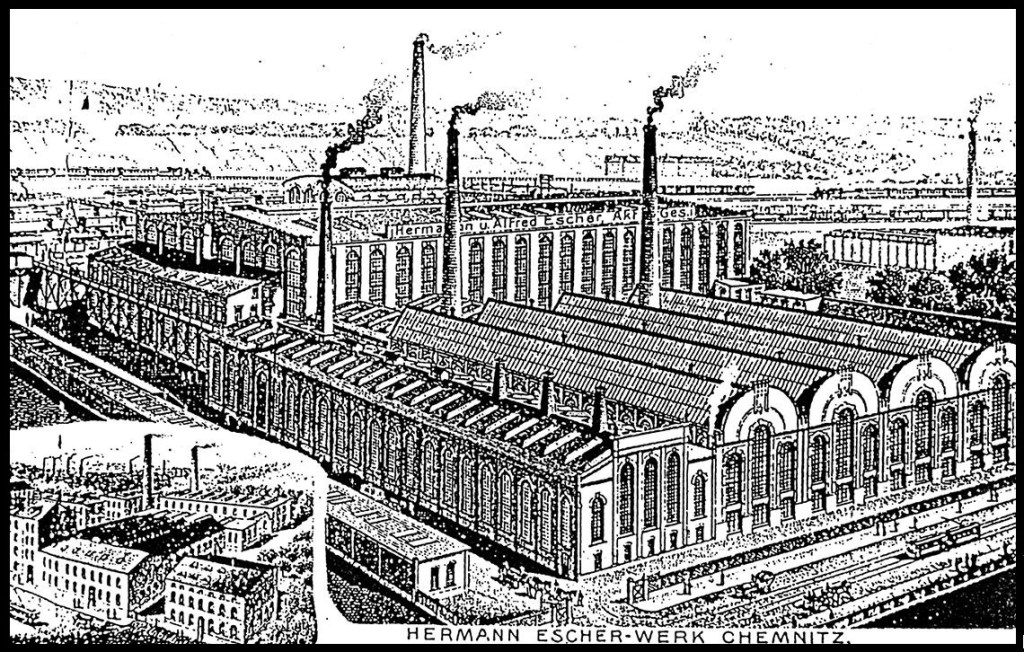 Samen met zijn zoon Alfred liet hij er draaibanken, freesmachines, schaafmachines en boormachines vervaardigen. Hermann was overigens reeds in 1874 samen met zijn broer Bernard in zaken gegaan en, nadat hun wegen in 1880 waren gescheiden, zich gaan toeleggen op de productie van gereedschappen. In 1897 richtte een brand grote schade aan, maar op de lange termijn had dit geen gevolgen voor de onderneming die zich voorspoedig ontwikkelde en ook een vestiging in het naburige Siegmar (tegenwoordig een stadsdeel van Chemnitz) opende. Om te kunnen investeren in een forse uitbreiding brachten vader en zoon in 1906 hun bedrijf onder in een naamloze vennootschap (Aktiengesellschaft): Hermann und Alfred Escher AG. De leiding kwam in handen van Alfred. Vader Hermann verliet weliswaar de firma maar bleef hoofdaandeelhouder. De uitbreiding omvatte onder andere de bouw van een nieuwe gieterijhal van zestig bij dertig meter met twee koepelovens, die tegenwoordig de behuizing van het industriemuseum is. Het ontwerp met zijn kenmerkende boogvormige vensters en gevels kwam uit de koker van architect Karl Rudolf Brendel. De nieuwe hal bood werk aan zo’n honderd arbeiders, die samen met vele anderen in 1911 liefst twee maanden in staking gingen om hun looneisen kracht bij te zetten. De lengte van de arbeidsweek, die toen zestig uur bedroeg, was overigens geen inzet van dit arbeidsconflict.