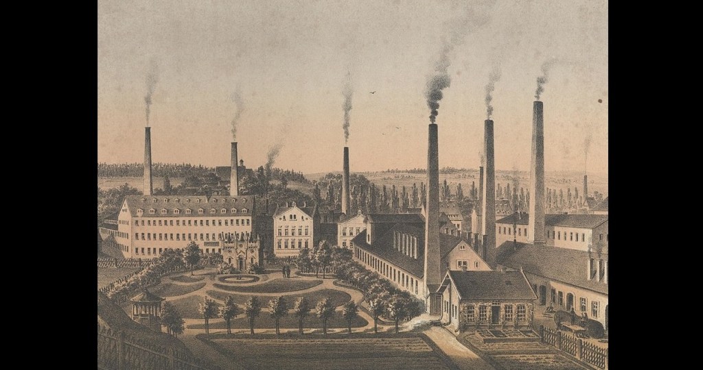 Afbeelding 3: De fabriek van Johann Zimmermann vervaardigde als eerste in Duitsland draaibanken en boormachines en geldt daarmee als grondlegger van de gereedschapsindustrie (‘Werkzeugindustrie’). Alleen zijn villa van deze fabrikant is behouden gebleven.