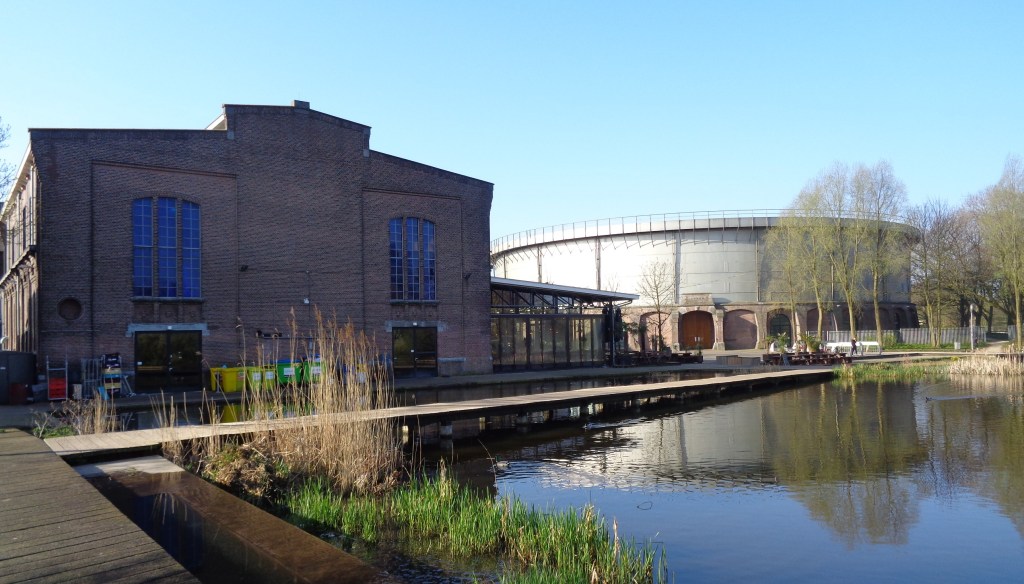 Afbeelding 4: In de gashouder (rechts) van de Westergasfabriek vinden tegenwoordig optredens, beurzen en evenementen plaats, in ketelhuis 9 (links) is Sea Food-restaurant Mossel & Gin gevestigd.