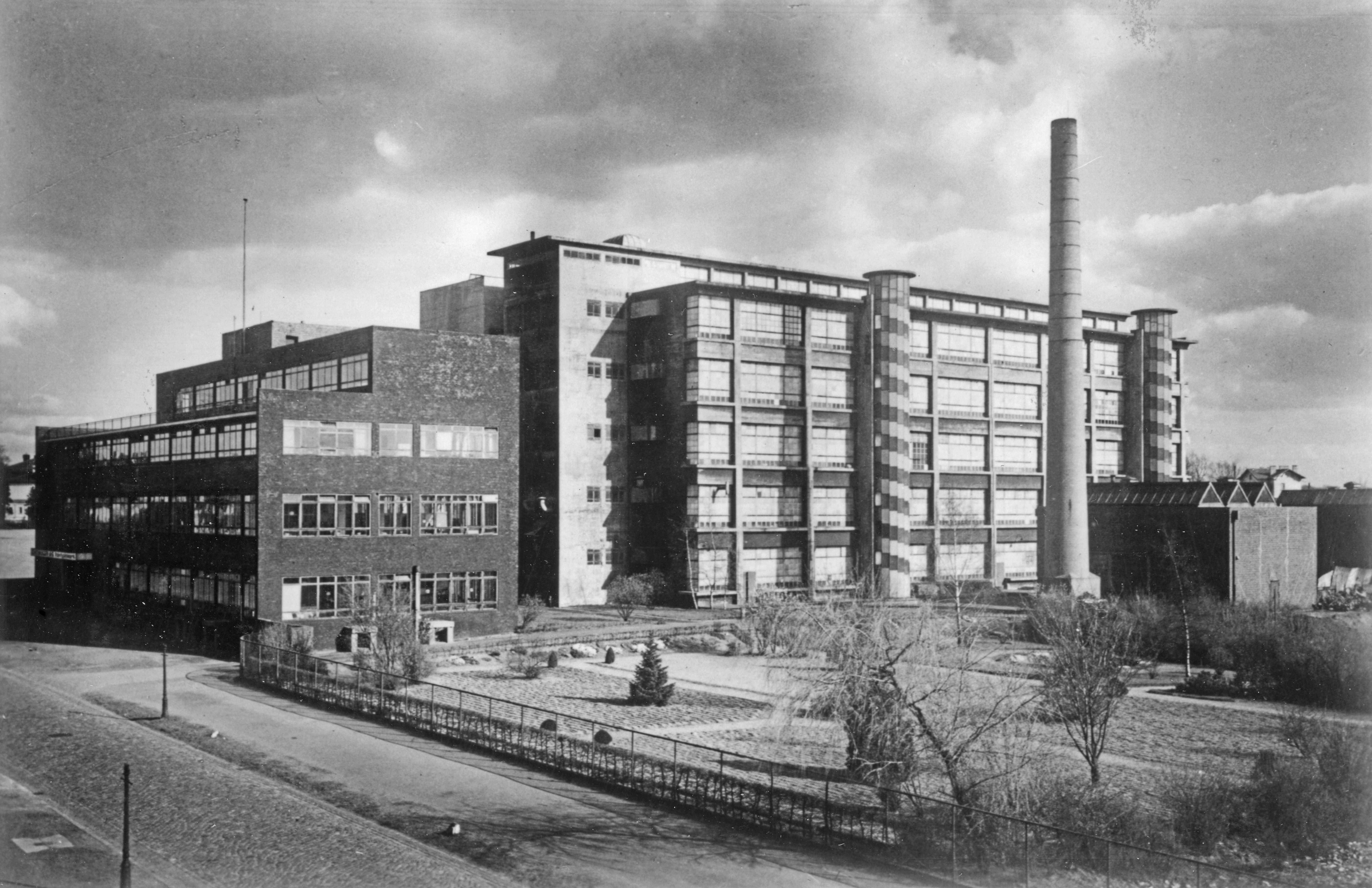 Afbeelding 3: De nieuwe röntgenbuizenfabriek (rechts) en het kantoorgebouw (links) kort na oplevering in 1930.