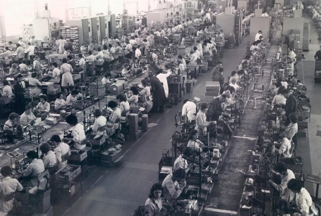 Afbeelding 2: Het assemblagewerk bij Philips in Hasselt werd grotendeels door vrouwenhanden verricht.