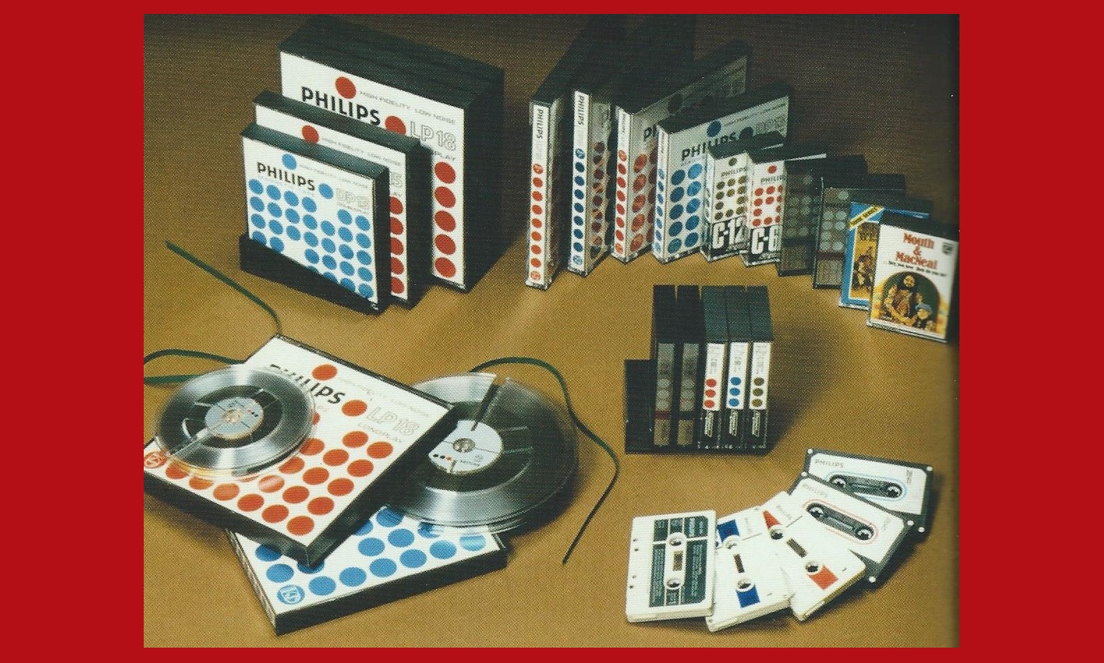 Afbeelding 4: Magneetbanden en Compact Cassettes, waarvoor in Hasselt de afspeelapparatuur werd geproduceerd.