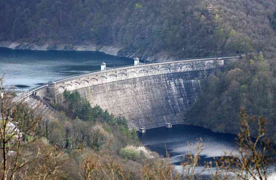 Afbeelding 3: De Urfttalsperre kwam in 1905 gereed en scheidt sinds 1938 het water van de Urftsee (323 m) en Rurstausee (282 m). Het was destijds de hoogste stuwdam van Europa.