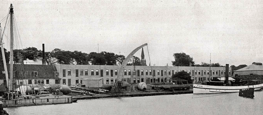 Afbeelding 2: De magazijnen langs de oostelijke kade van het Groote Dok.