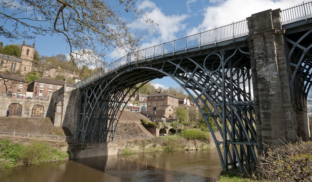 Afbeelding 3: Hoewel de brug over de Severn al bijna twee-en-een-halve eeuw de blikvanger is van Iron Bridge, was er voor het nabijgelegen industriegebied waar ze gebouwd werd nauwelijks belangstelling. De herwaardering hiervan is mede te danken aan industrieel archeologen van het eerste uur.