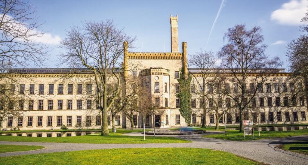 Afbeelding 4: De Ravensberger Spinnerei in Bielefeld werd bij haar bouw in 1855 versierd met hoektorentjes en ornamenten die de indruk van een middeleeuws kasteel moesten wekken. Sinds 1994 biedt het gebouw onderdak aan de collectie van het historisch museum van Bielefeld.