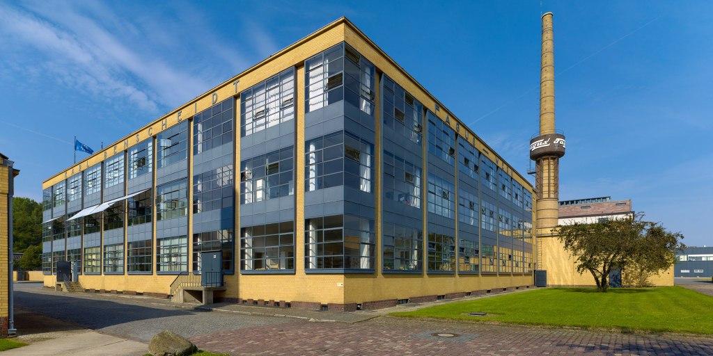 Afbeelding 1: De Fagusfabriek die tussen 1911 en 1913 in Alfeld-an-der-Leine naar een ontwerp van Walter Gropius werd gebouwd geldt als wegbereider van de Nieuwe Zakelijkheid. In 2011 kreeg het een plaats op de werelderfgoedlijst van de UNESCO. Hoewel er nog altijd op bescheiden schaal schoenleesten worden vervaardigd, heeft het hoofdzakelijk een museale functie.