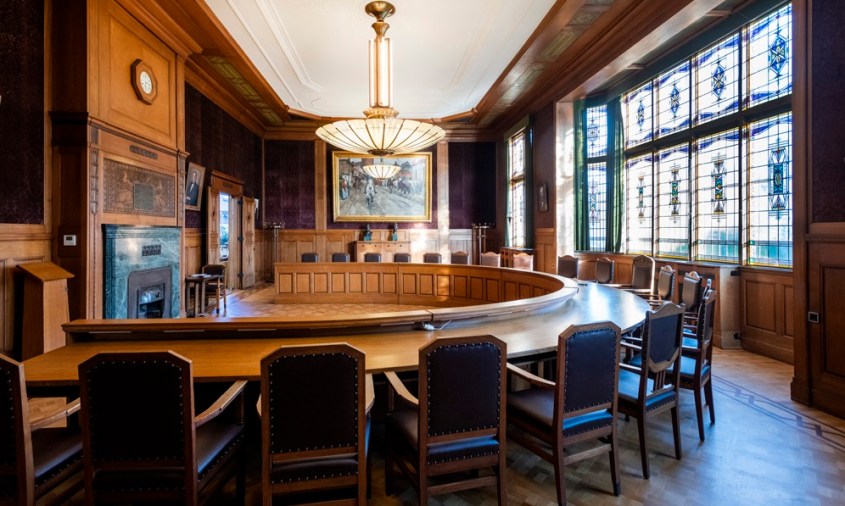 Afbeelding 5: Architecten die voor industriële ondernemingen kantoren ontwierpen lieten zich hierbij inspireren door de toenmalige bouwstijlen. Zo werd het kantoor van brouwerij De Drie Hoefijzers te Breda in 1927 een toonbeeld van Art-Déco, zowel wat architectuur als interieur betreft.