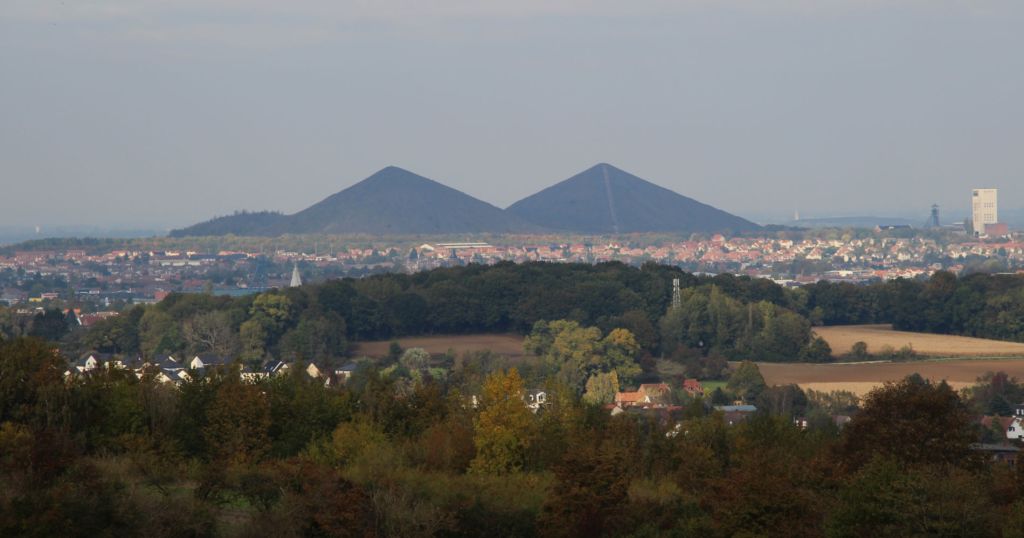 Afbeelding 6: Naast lucht, water en bodem laat de industrie ook haar sporen na in het landschap. De kegelvormige mijnsteenbergen van de steenkolenwinning zijn daar het bekendste voorbeeld van.