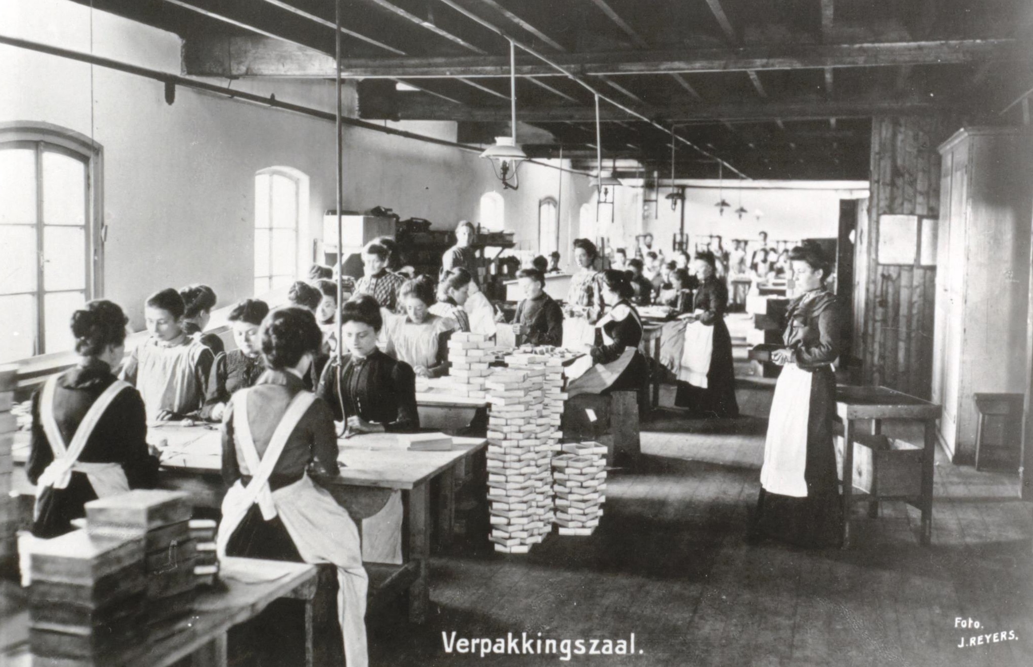 Afbeelding 4: Dankzij een luxe verpakking, zorgvuldig aangebracht door vrouwenhanden, kreeg de zeep van Dobbelman extra uitstraling.