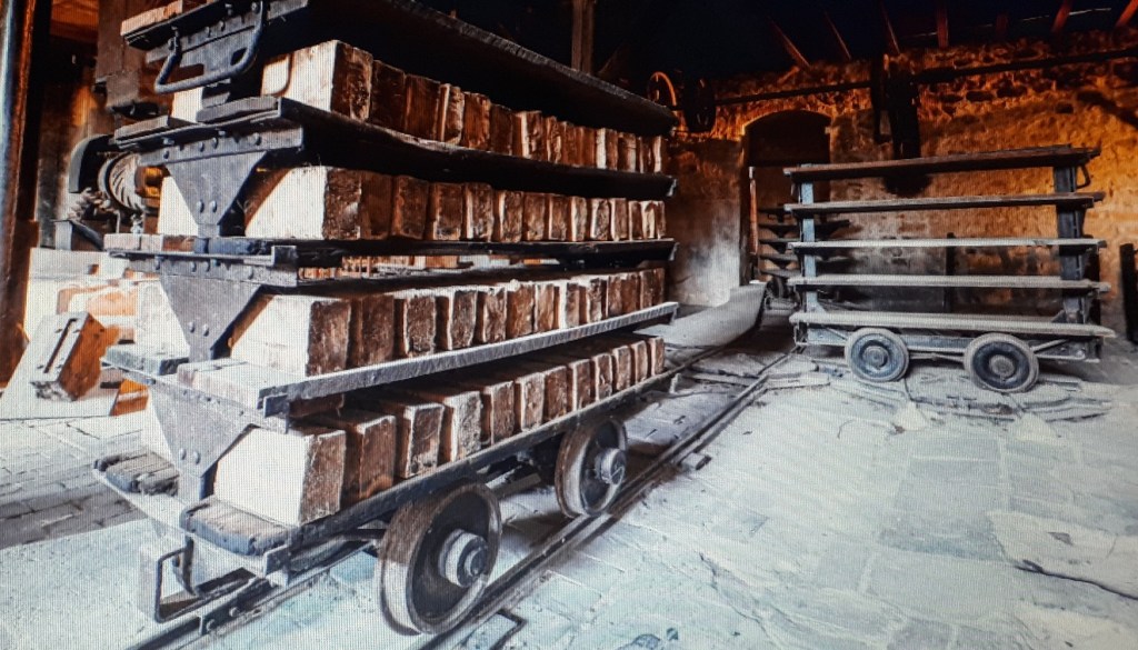 Afbeelding 3: Karren voor het transport van bakstenen, met op de achtergrond de opening van één van de ovens van briqueterie Touillards-Vairet-Baudot.