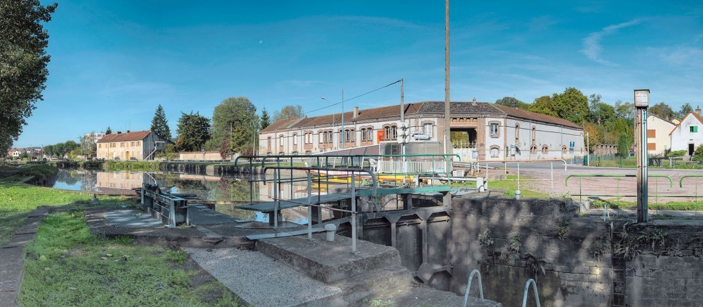 Afbeelding 4: De resterende fabrieksgebouwen van Tuilerie Perrusson nabij sluis 9 in het Canal du Centre.