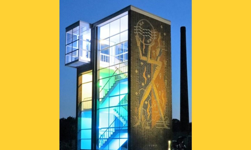 Afbeelding 6: Het trappenhuis met de beeltenis van Mercurius is behouden gebleven. Het is tevens de benaming van het zonnepark en bedrijventerrein.
