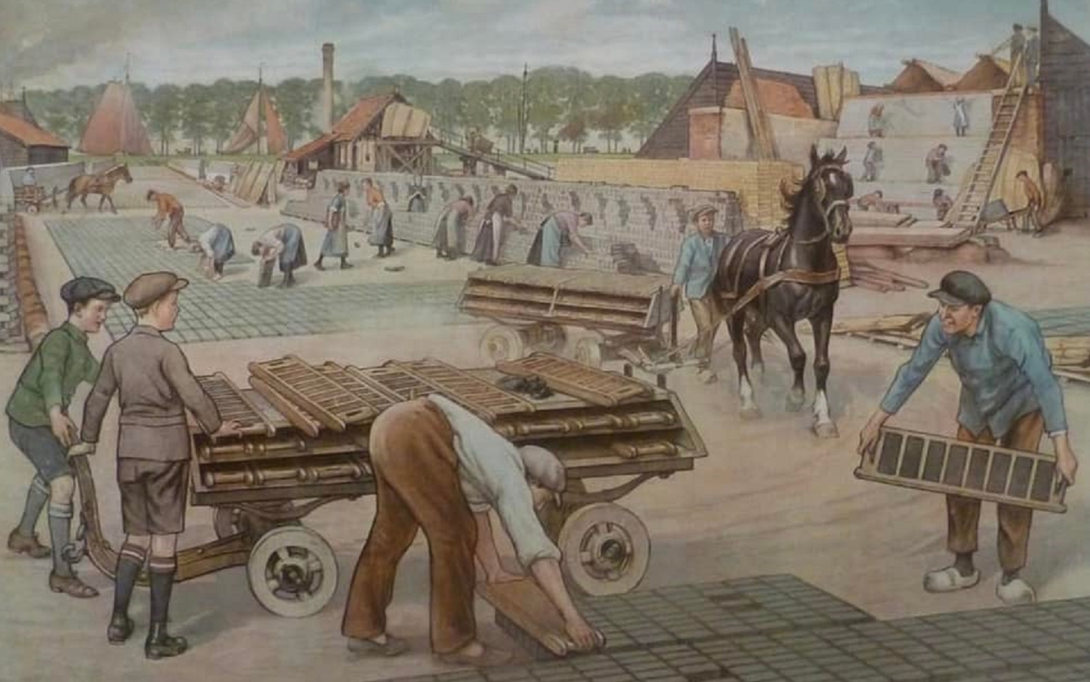 De laatste decennia van de negentiende eeuw kenmerkten zich door een onstuitbare bouwwoede. Vestingwerken werden geslecht waardoor steden konden gaan groeien met villaparken, arbeiderswijken en industrieterreinen. Daarbuiten ontstonden in een landschap dat eeuwen vrijwel onveranderd was gebleven nieuwe verkeersinfrastructuur, waterwerken en verdedigingslinies. Om al het bouwmateriaal hiervoor te kunnen leveren groeide het aantal steenbakkerijen spectaculair en bereikte rond 1880 een maximum van zo’n negenhonderd. Door mechanisatie en technische vernieuwingen transformeerde een deel hiervan tot steenfabrieken, terwijl zij die ambachtelijk bleven grotendeels ten onder gingen in de crisis- en oorlogsjaren. Na de Tweede Wereldoorlog, toen er een nieuwe periode van verhoogde bouwactiviteit aanbrak, waren er nog tweehonderdvijfentwintig over die werk boden aan dertienduizend mensen. Door schaalvergroting en automatisering zijn er daar vandaag de dag nog vijfendertig van overgebleven met in totaal ruim duizend man personeel.