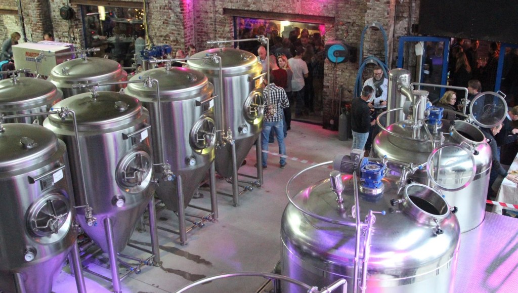 Afbeelding 3: De brouwketels en gistkuipen van stadsbrouwerij.