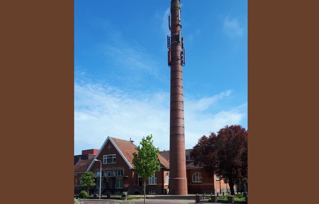 Afbeelding 12: Net als in Bathmen fungeert ook in ’s Heerenbroek de fabrieksschoorsteen als zendmast.